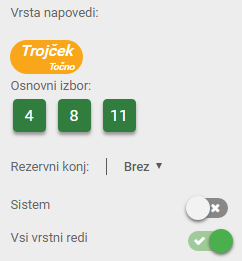 Pri tem se v ponudbi na desni strani pri vsakem konju za izbiro ponudita dve polji (OI – osnovni izbor ter DI – dodatni izbor).